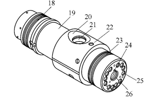 如圖2所示,承壓接頭體17材料為高磁導率高強度材料,比如高磁導率高強度沉淀硬化不銹鋼17-4PH。使用此種材料一方面可以對多路信號進行有效地電磁屏蔽,另一方面可用來承載140MPa的環(huán)境壓力。承壓接頭體17的左端為容納電子線路線槽的常壓