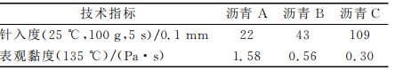 本研究中上海昌吉地質儀器有限公司所采用的3種瀝青來自中國石化集團,分別是30號瀝青(瀝青A)、50號瀝青(雙晶磚B)和110號瀝青(瀝青C),瀝青的路用技術指標見表1。